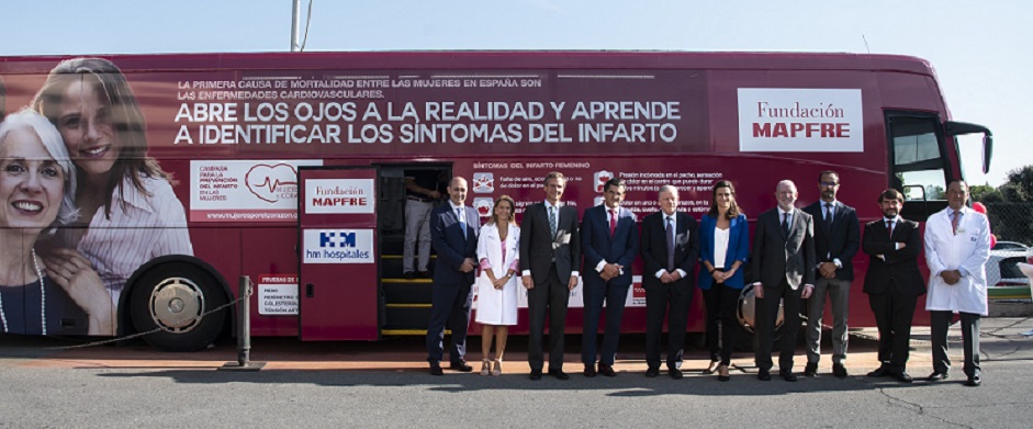 Dentro del espíritu de promoción y prevención de la salud cardiovascular que impregna este convenio, HM Hospitales participa con la campaña ‘Mujeres por el corazón’, dirigida por Fundación MAPFRE. El objetivo principal de este proyecto es informar a la población acerca de la importancia del reconocimiento precoz de los síntomas del infarto en la mujer y de la necesidad de mantener un estilo de vida saludable que contribuya a reducir el impacto de la enfermedad cardiovascular en la mujer. El autobús de esta campaña ha visitado el Hospital Universitario HM Montepríncipe para concienciar a sus empleados y usuarios. D. Julio Domingo Souto, director de Fundación MAPFRE, ha destacado la importancia de esta campaña y el positivo ejemplo de HM Hospitales al unirse a la iniciativa, de la que se han beneficiado hasta la fecha un total de 387.000 mujeres, tanto en España como en Brasil, Colombia, República Dominicana y Panamá.