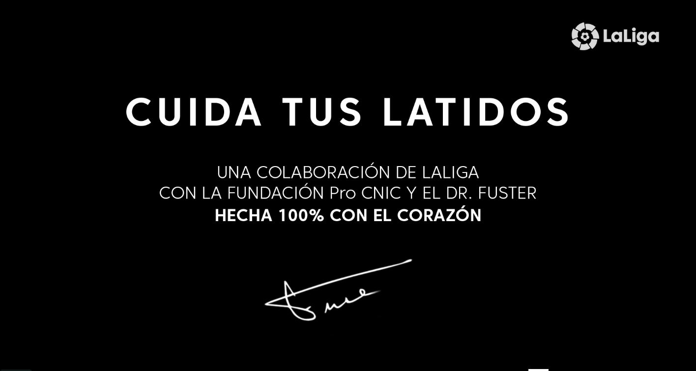 La alianza entre el Dr. Valentín Fuster y LaLiga se remonta a la pasada temporada, cuando para conmemorar el 90 aniversario de la competición, el cardiólogo su sumó a la iniciativa ’90 años latiendo juntos’, que puede verse en este vídeo. El Dr. Valentín Fuster participó en el spot de felicitación de LaLiga, apoyando su latido, una colaboración sin ánimo de lucro que se reflejó en un acuerdo con la Fundación Pro CNIC, entidad que apoya la investigación el CNIC, y el propio CNIC para fomentar hábitos saludables para cuidar los corazones de sus seguidores y sus jugadores.